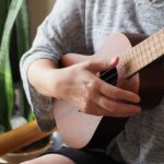サウンドホールの真上あたりで弾くとバランスのよい音色がするのだそうです。