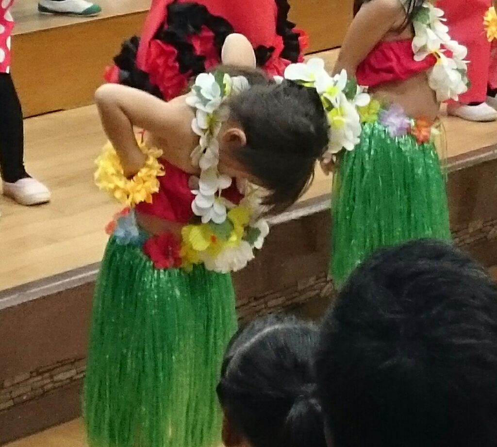 ハワイアンと少し違って、タヒチアンはパーカッションやドラムにのせてアップテンポに踊るイメージです。