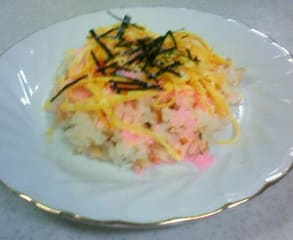 そして、桜でんぶと焼き海苔を散らしてできあがり!